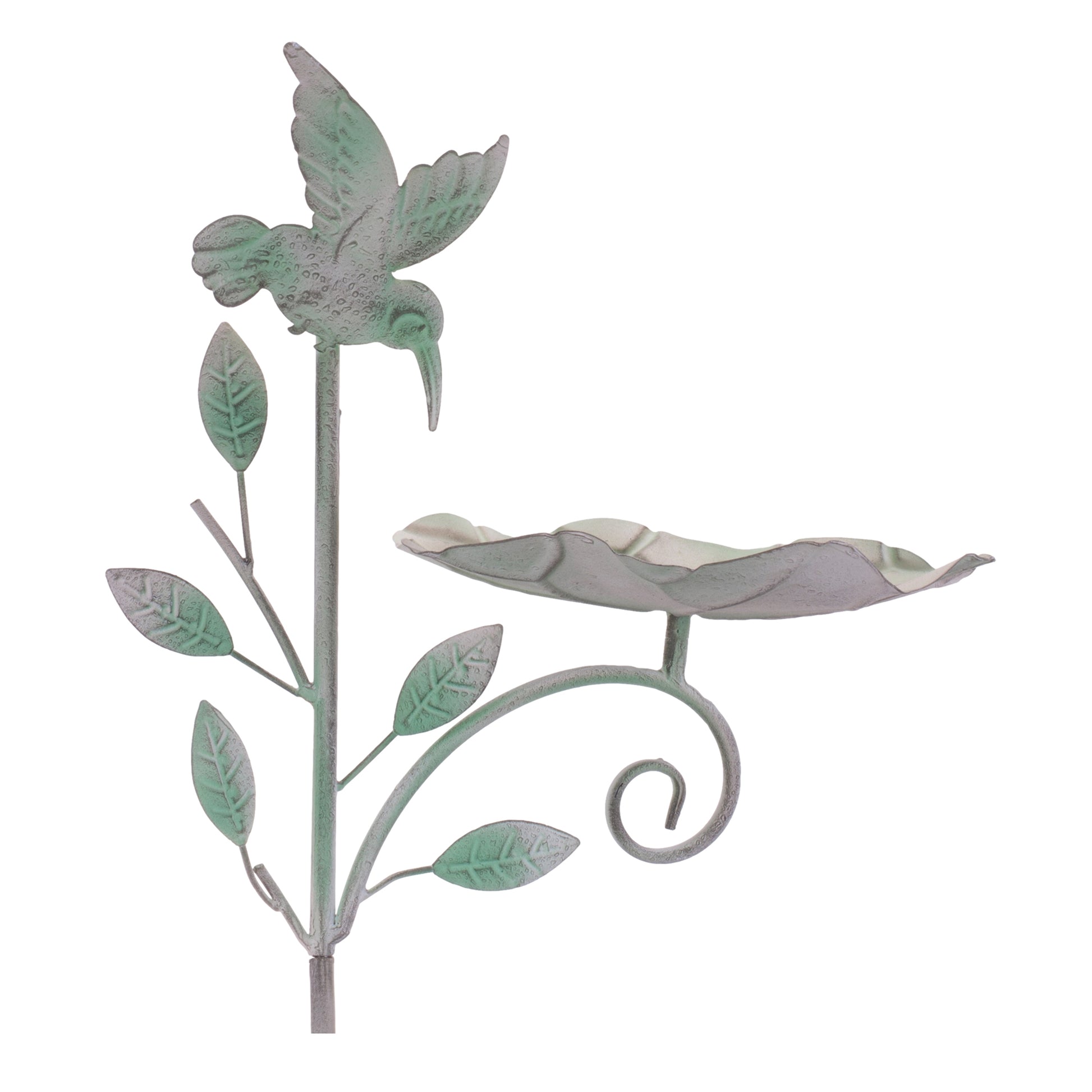 Iron Hummingbird Leaf Bird Feeder Garden Stake (Set of 2)