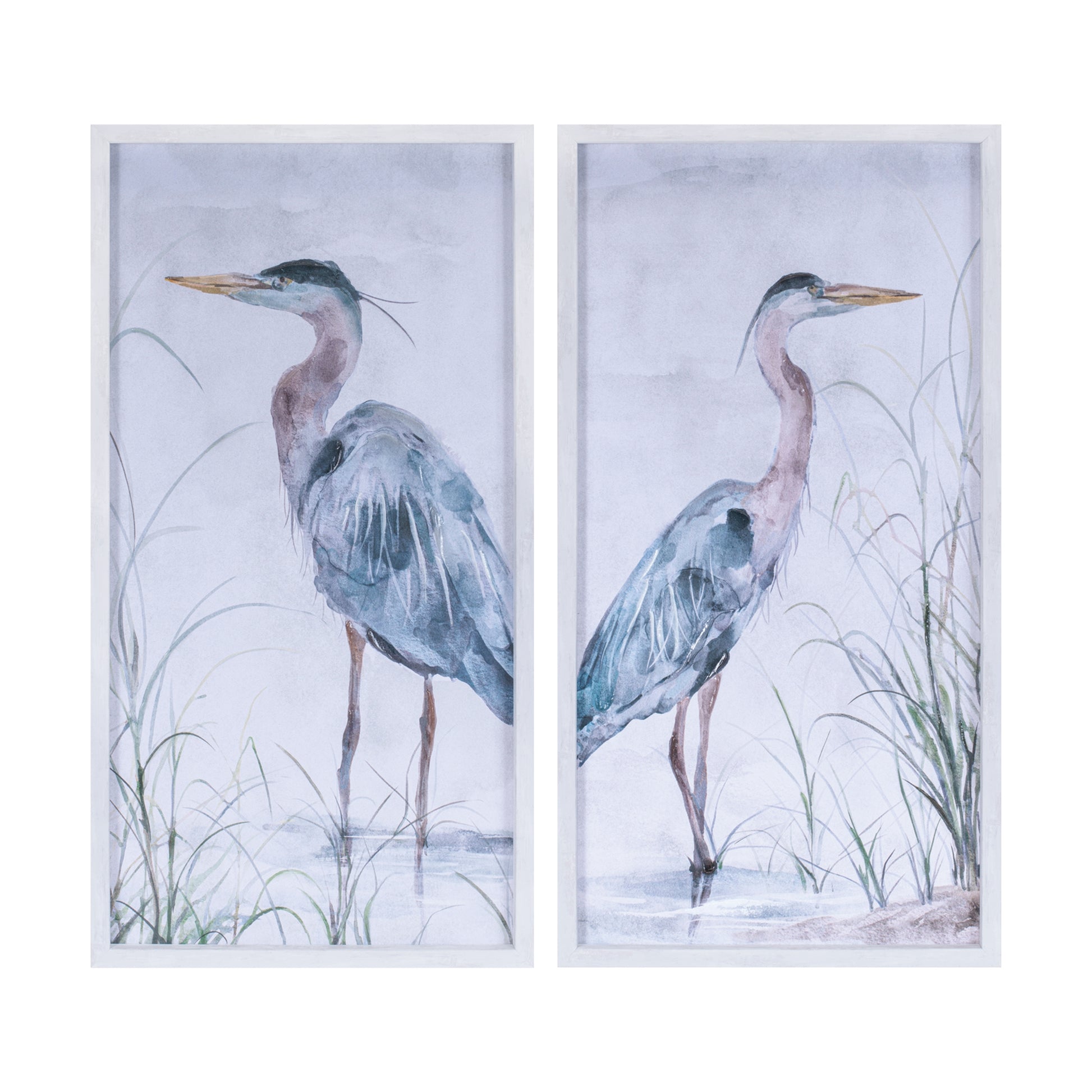 Framed Lake Heron Bird Wall Print (Set of 2)
