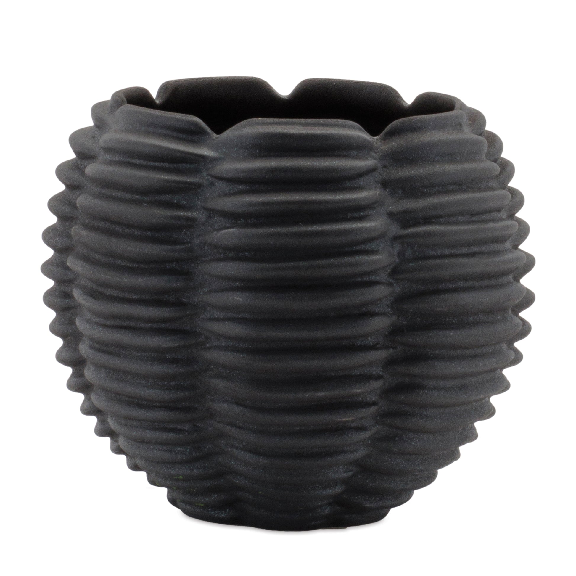 Add a touch of modern elegance to your space with the Ribbed Ceramic Bud Vase set. Featuring a bold black tone with a subtle unglazed finish and glittered touches these vases are designed with a sleek rounded shape and a ribbed texture for added depth. Sold in a set of two matching pieces these vases are perfect for displaying on your bookshelf mantle or coffee table. Pair them with fresh garden stems or dried florals to bring a chic natural element into your home. The perfect fit for contemporary or minimalist decor.