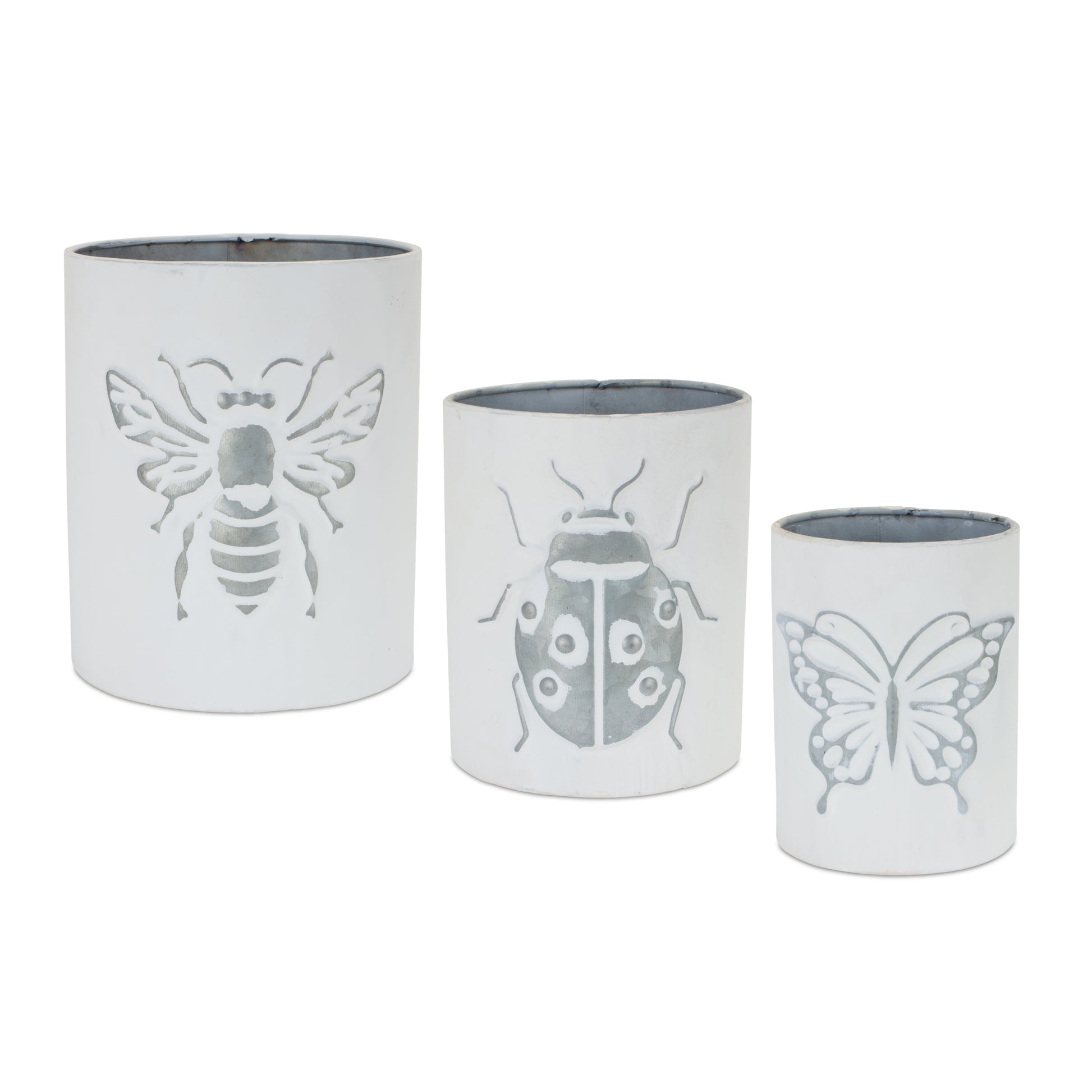 Display your indoor plants in style with this beautiful set of Metal Insect Pots. Featuring three assorted sizes this set is sure to fit in with any style of home decor. The cool grey and white tones paired with the white-washed finish and insect accent is the perfect combination to create a stunning display. The quality terracotta clay composition is sure to last for seasons to come. Complete the look by adding a potted plant or bunch of dried florals to each pot. The designs include bumble bee lady bug and butterfly.