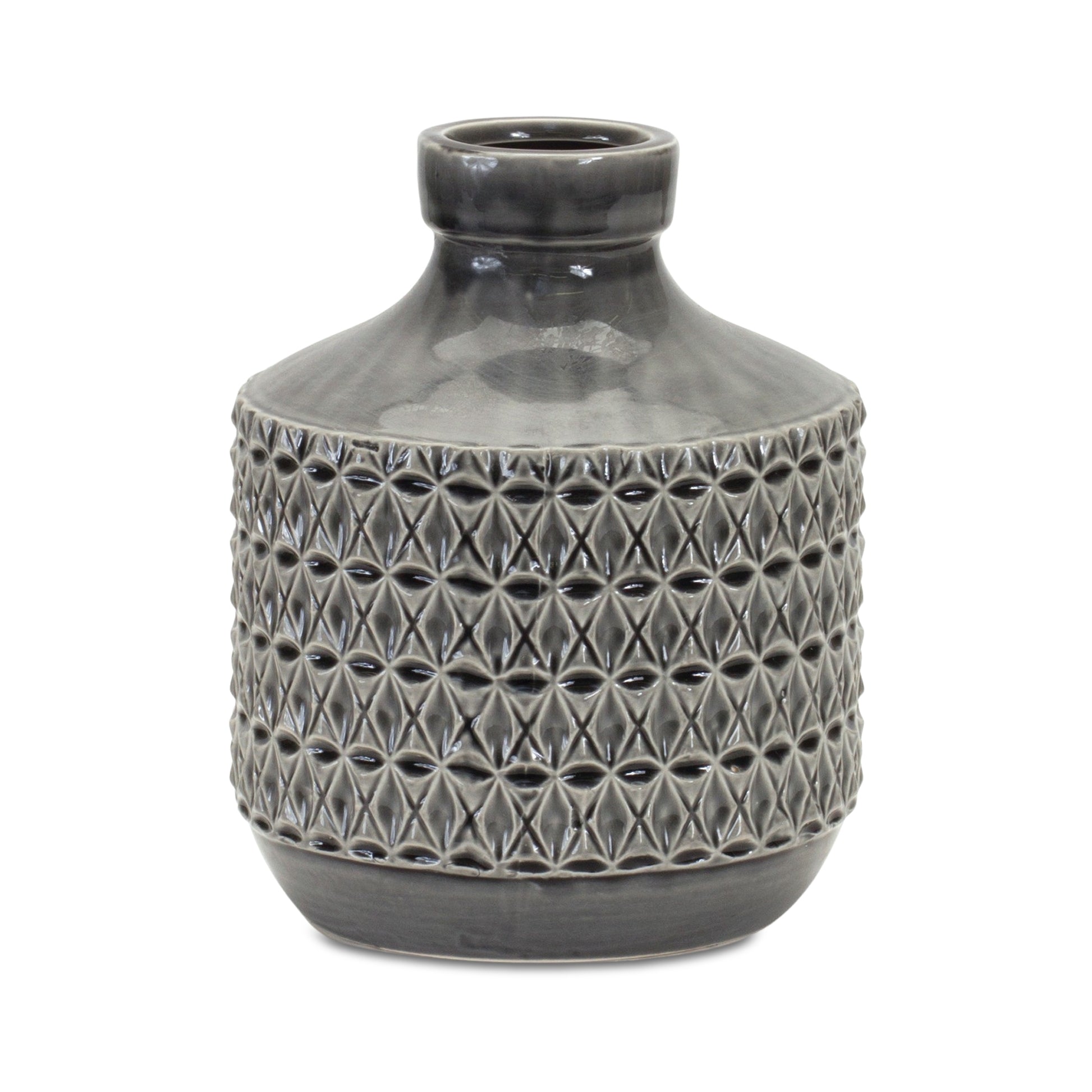Goemetric Terra Cotta Vase with Black Finish 9"H