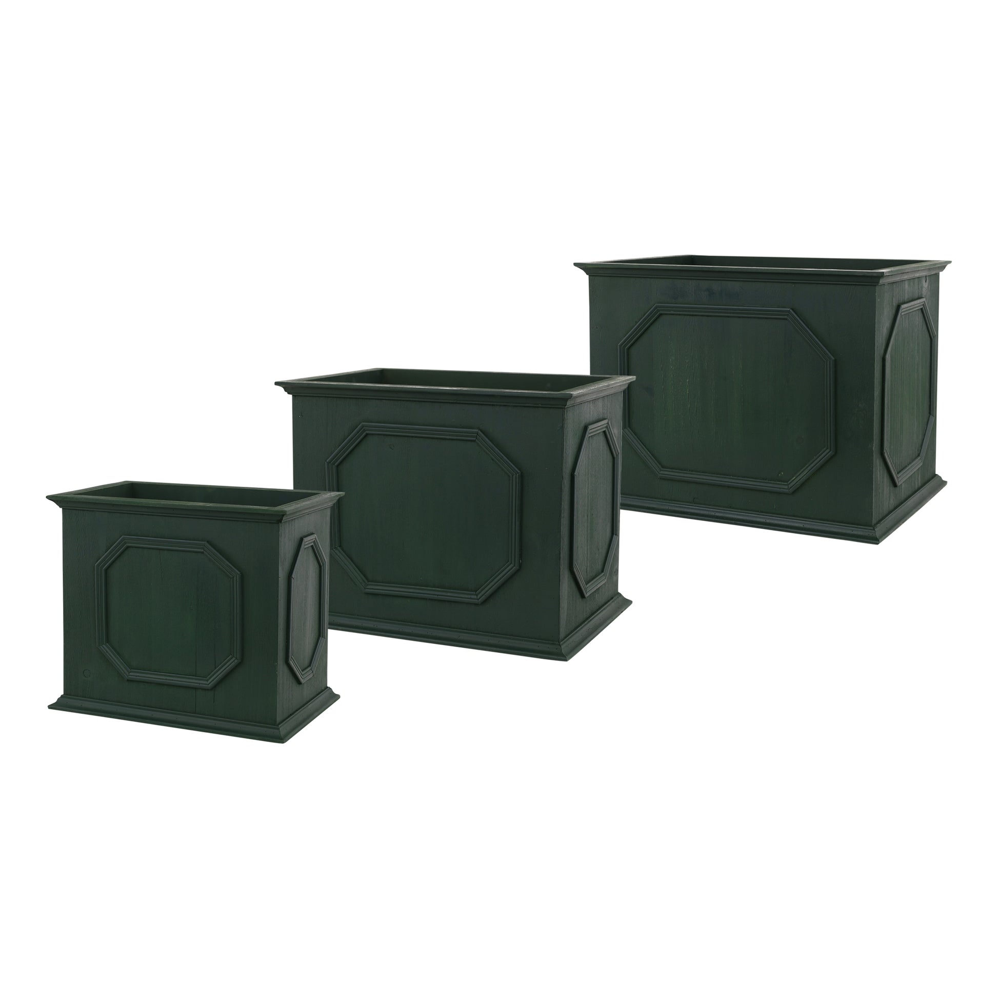 Display your plants in style with this beautiful set of Wooden Box Planters. Featuring three assorted sizes the faux traditional design paired with the trendy green tone is the perfect combination to create a timeless display. The quality wooden composition is sure to last for seasons to come. Complete the look by adding a faux floral arrangement to each box.
